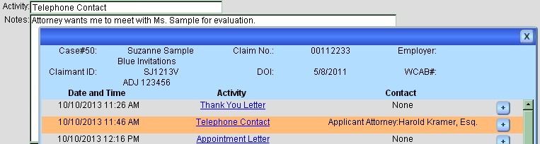 The big 'Notes:' field is for detailed information about the case activity, such as a summary of a phone conference, or any special notes that need to be part of the case records.