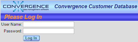 To log into Convergence, you will need a user name and a password. User accounts may be created by the user admin or by a user that has the privilege to create new accounts. Keep your password safe, both safe from being stolen, and safely known by you. Memorize if possible, though avoid anything too easy to guess. Type the URL for you Convergence login page to start out. This usually will look like https://www.mydomain.com/cgi-bin/cnv/login.cgi where mydomain.com is the domain your copy of Convergence runs under. Once you have entered your name and password and clicked the button 'Log In', you should see a list of cases in the database, or a page to start a new case if no cases are in the database yet.