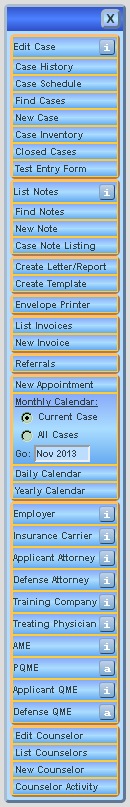 Each menu item highlights as you move the mouse across it, and clicking on a menu when it is highlighted will take you to the function named, such as Edit Case, New Note, List Invoices, etc.
