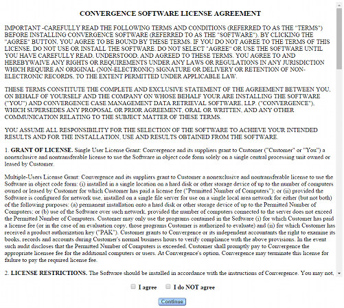 Information in this manual is subject to change without notice, and does not represent any commitment on the part of Convergence Case Management Data Retrieval Software, LLC. The software described in this manual is furnished under a license agreement and may be used only in accordance with its terms and conditions.