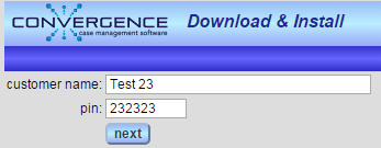 The user name and PIN you enter should be exactly the ones you received in your email from Convergence, including any punctuation or capitalization. If these are entered correctly, you will be taken to a page to set up Convergence on your server.
