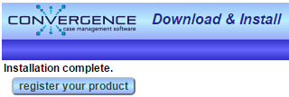 Click 'register your product' to proceed to the registration page. After you accept the license and register, you will be prompted to log into Convergence for the first time.