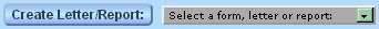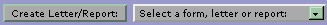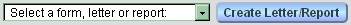 To generate a template document for the current case, select the template you want from the menu, and click the button 'Create Letter/Report'.