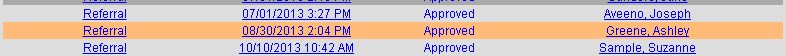 If a referral in the list was for the current case, that entry shows up with an orange highlight.